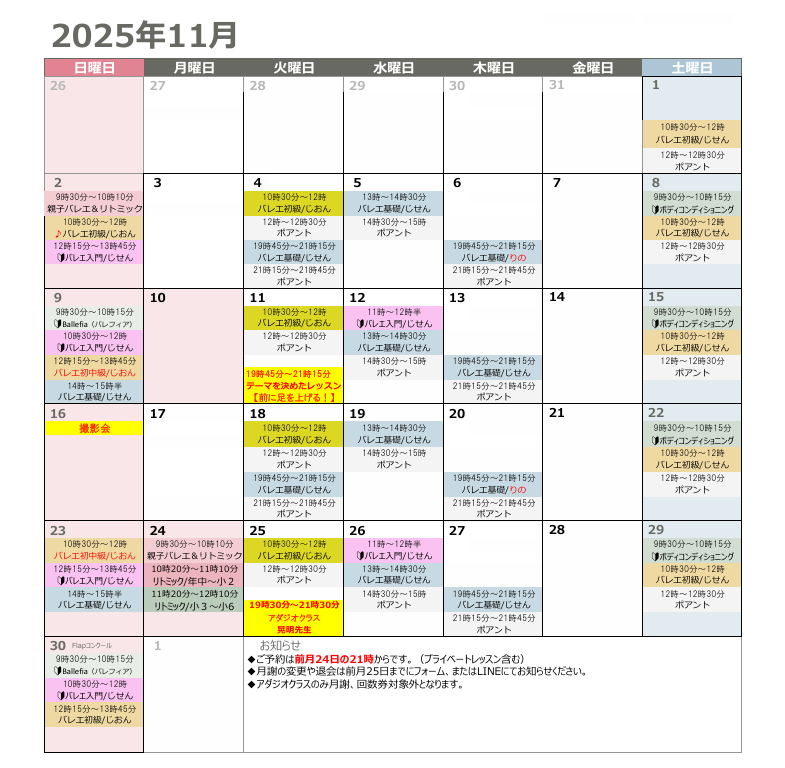 いつもジリスバレエスクールのレッスンをご受講くださりありがとうございます。